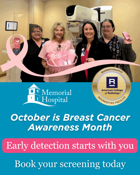 Memorial Hospital is proud to announce that its Diagnostic Imaging Department has been awarded a three-year accreditation in mammography by…