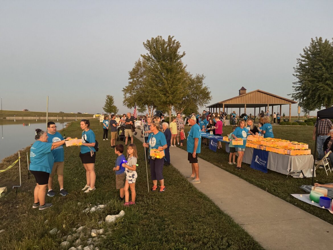 Pictured: Crowd gathers at Memorial Hospital’s Water Lantern Festival as part of the anniversary celebration on Saturday evening, Sept. 27, 2025.