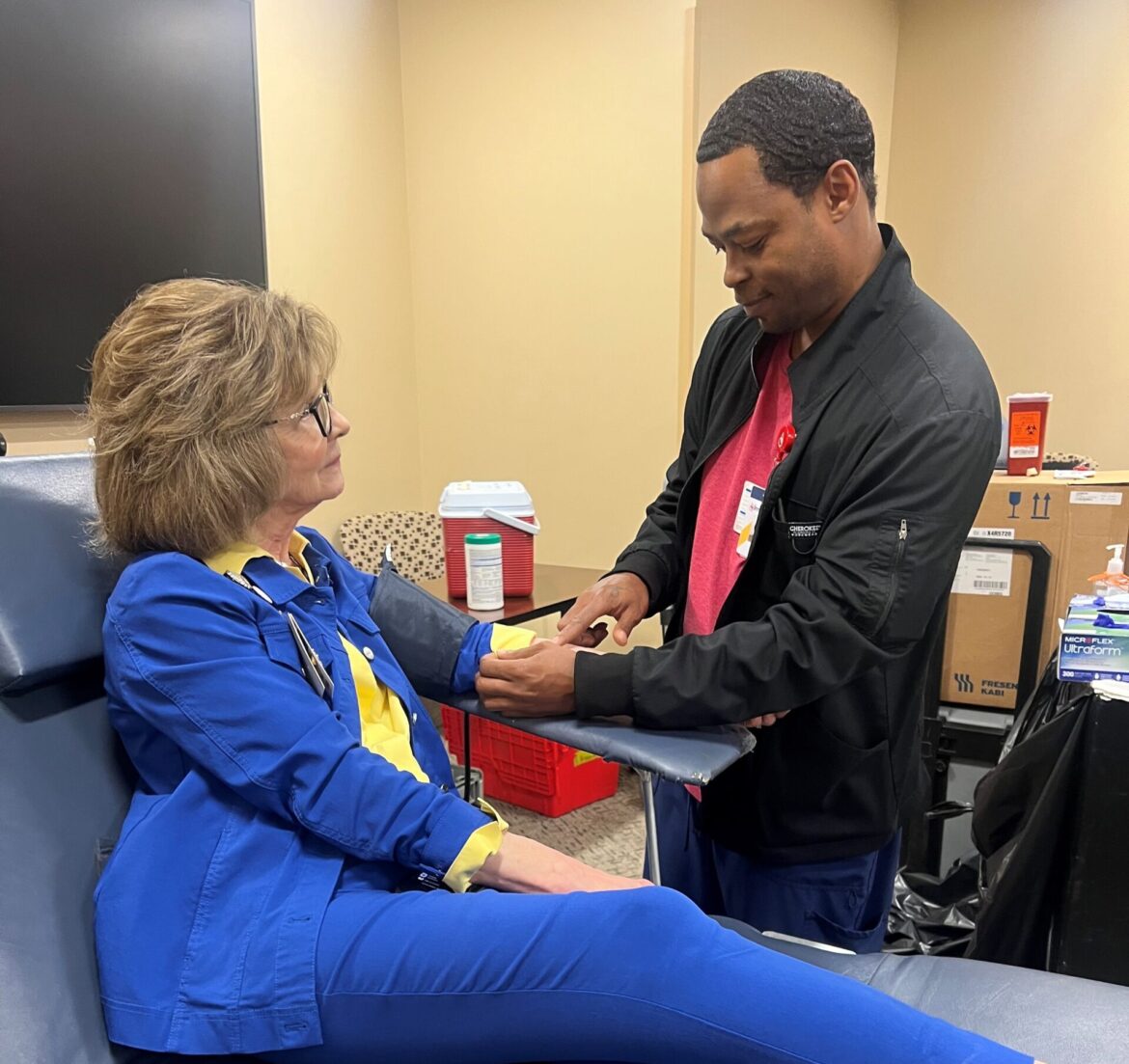 Pictured: Ada Bair, donor, with Eric, Collections Specialist- ImpactLife, at a previous ImpactLife blood drive at Memorial Hospital.